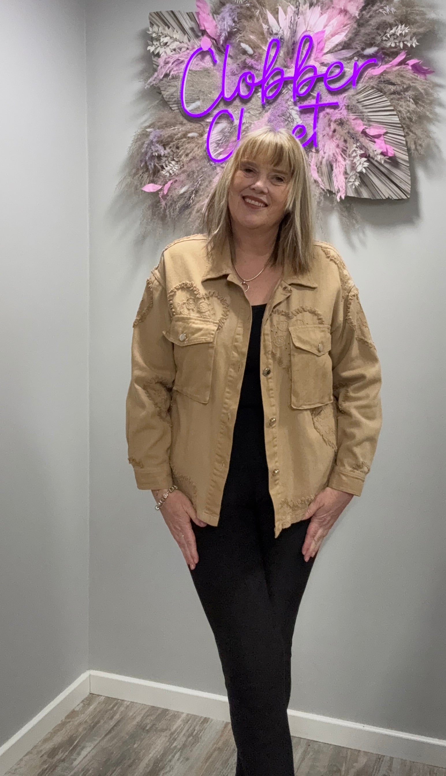 Camel Broderie Anglaise Heart Cotton Drill Jacket
