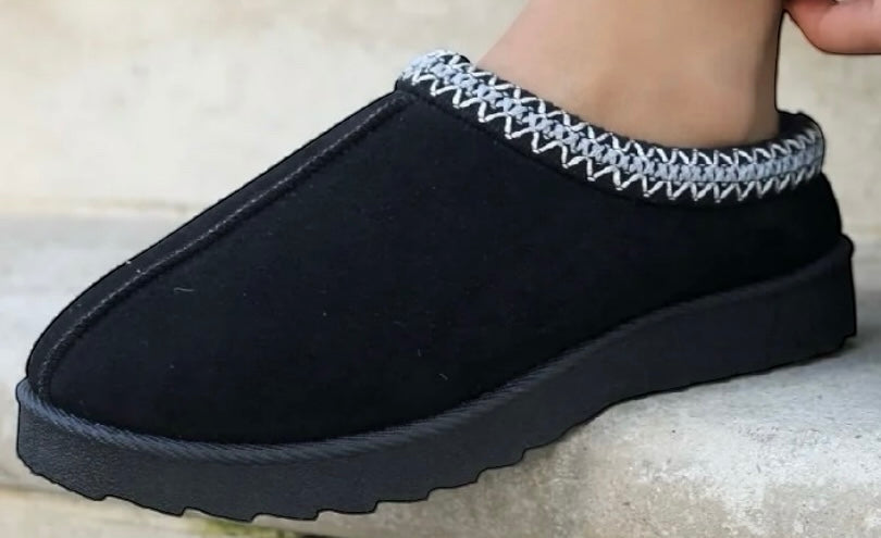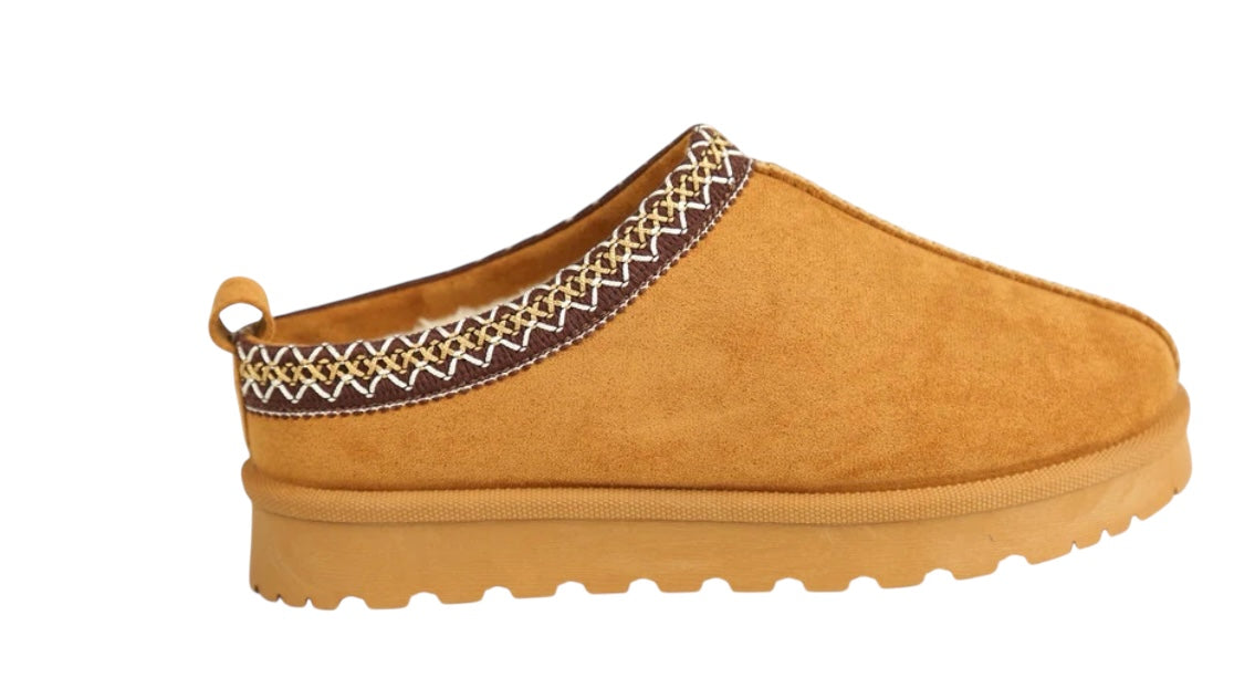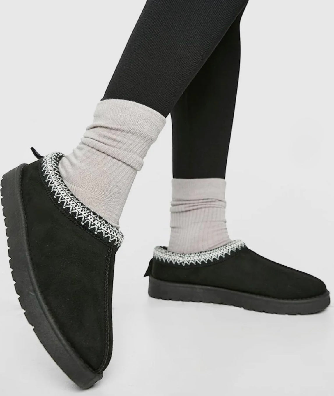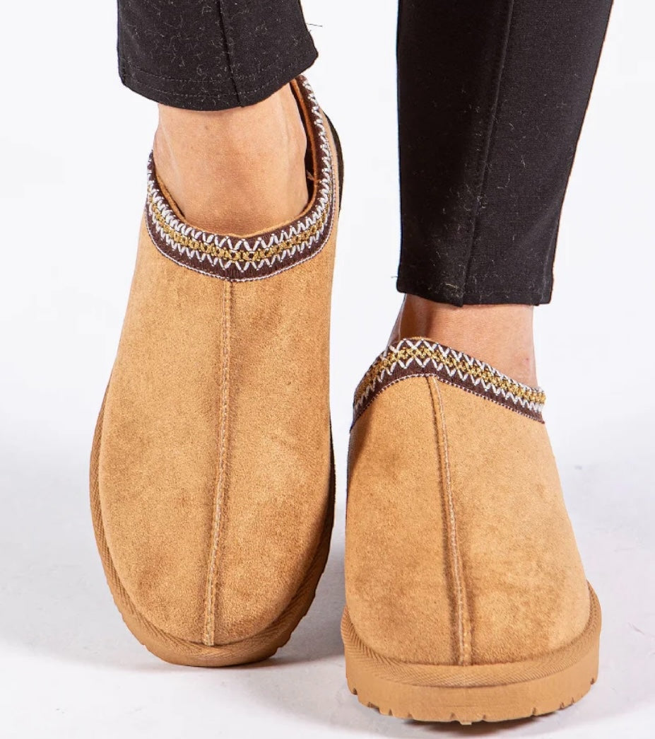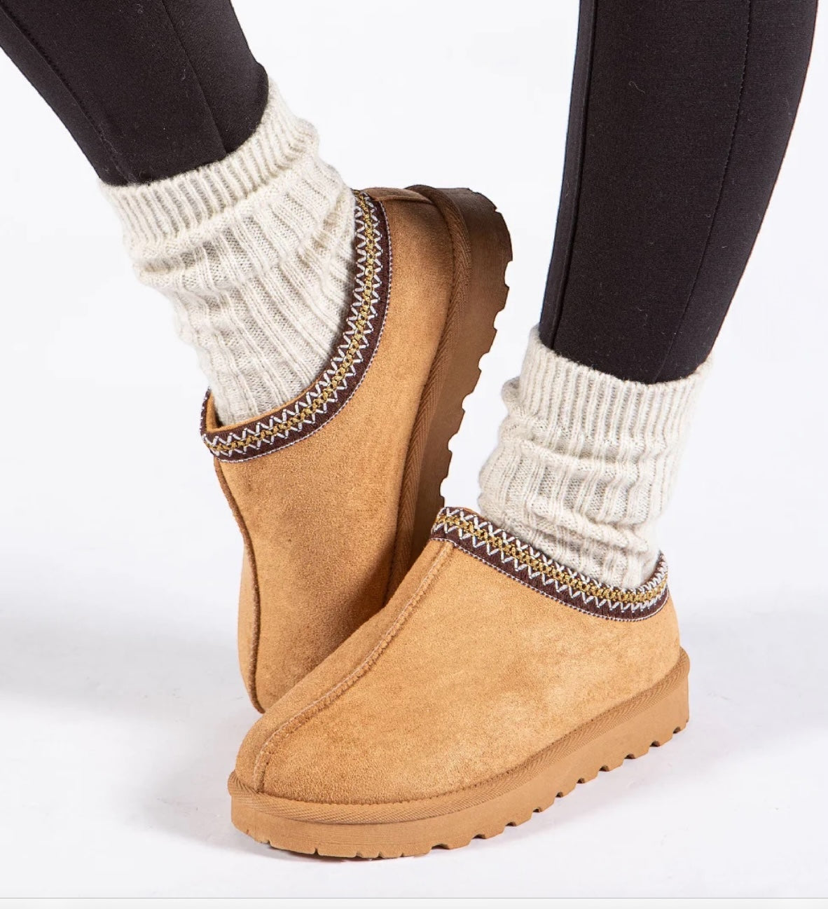 Faux Suede Embroider Aztec Detail Cozy Fluffy Slipper Boots