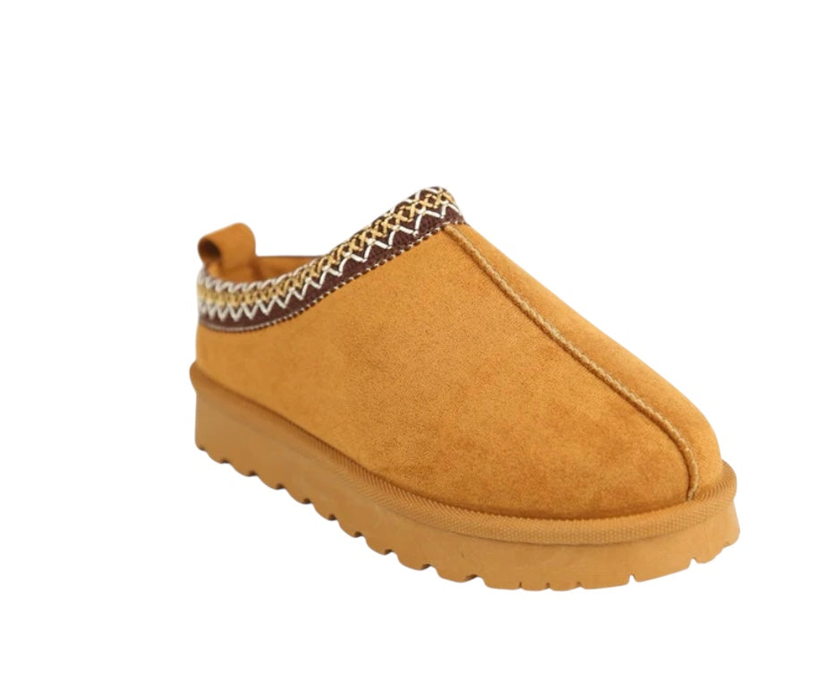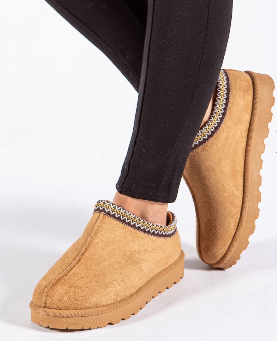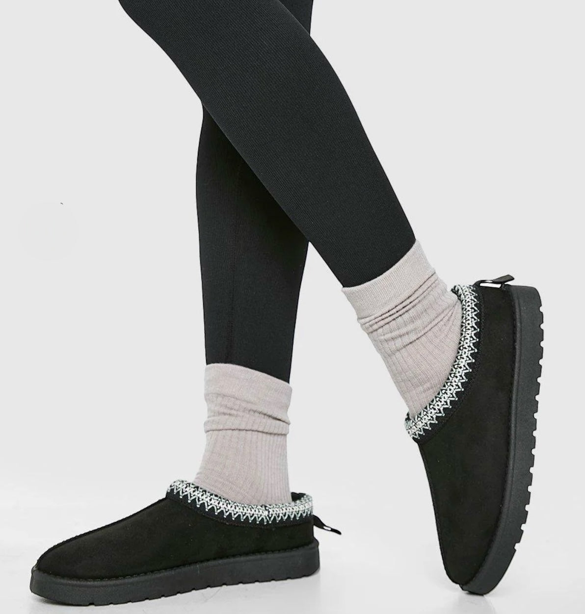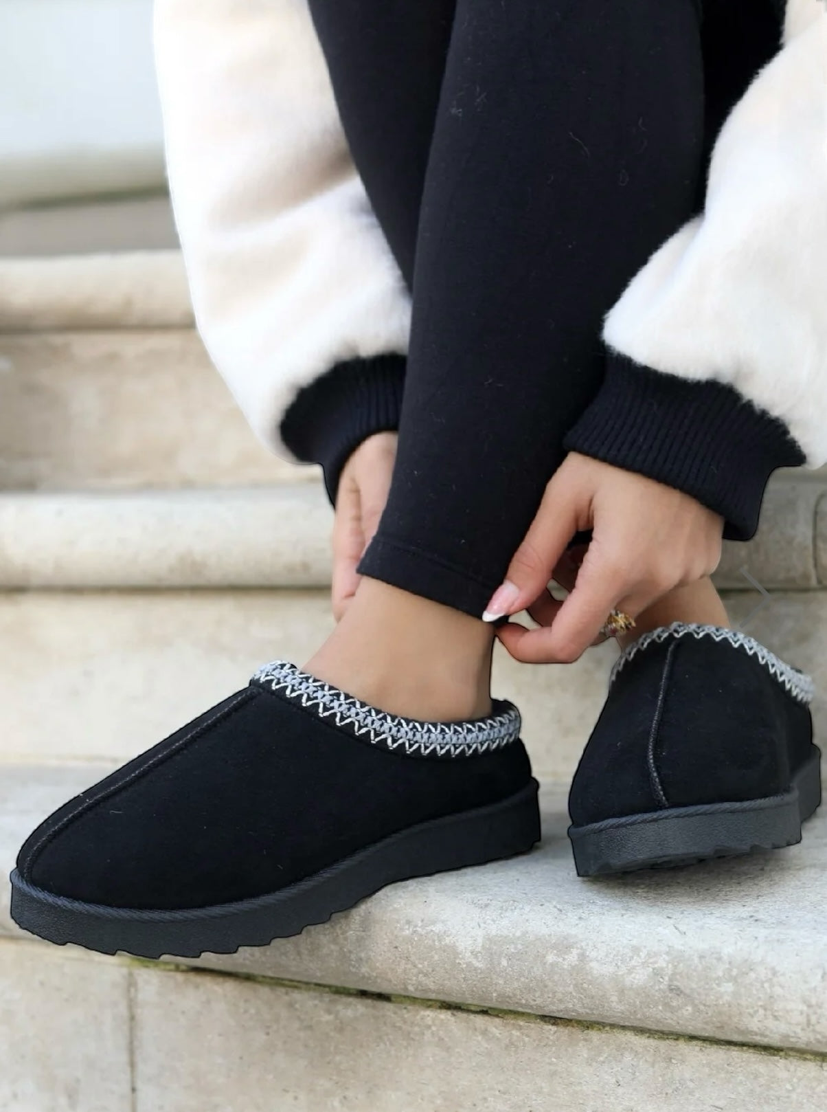 Faux Suede Embroider Aztec Detail Cozy Fluffy Slipper Boots