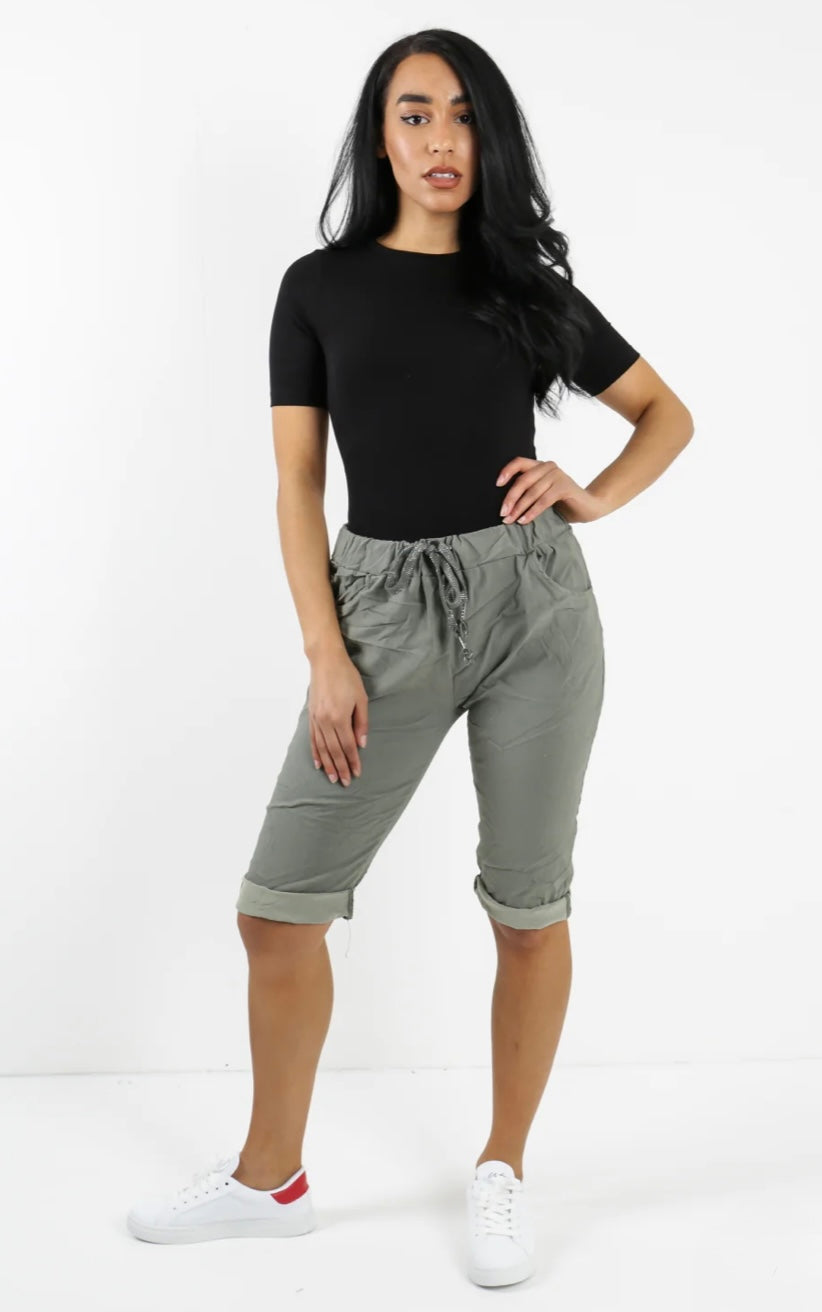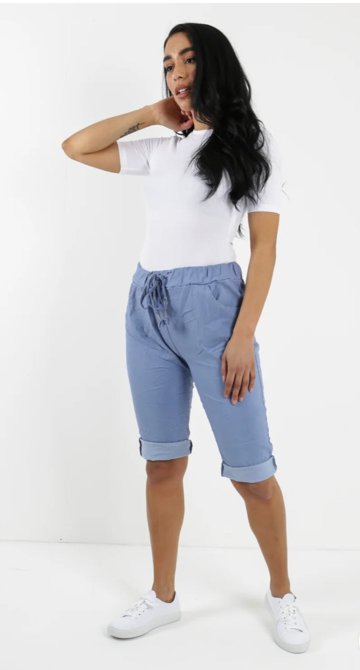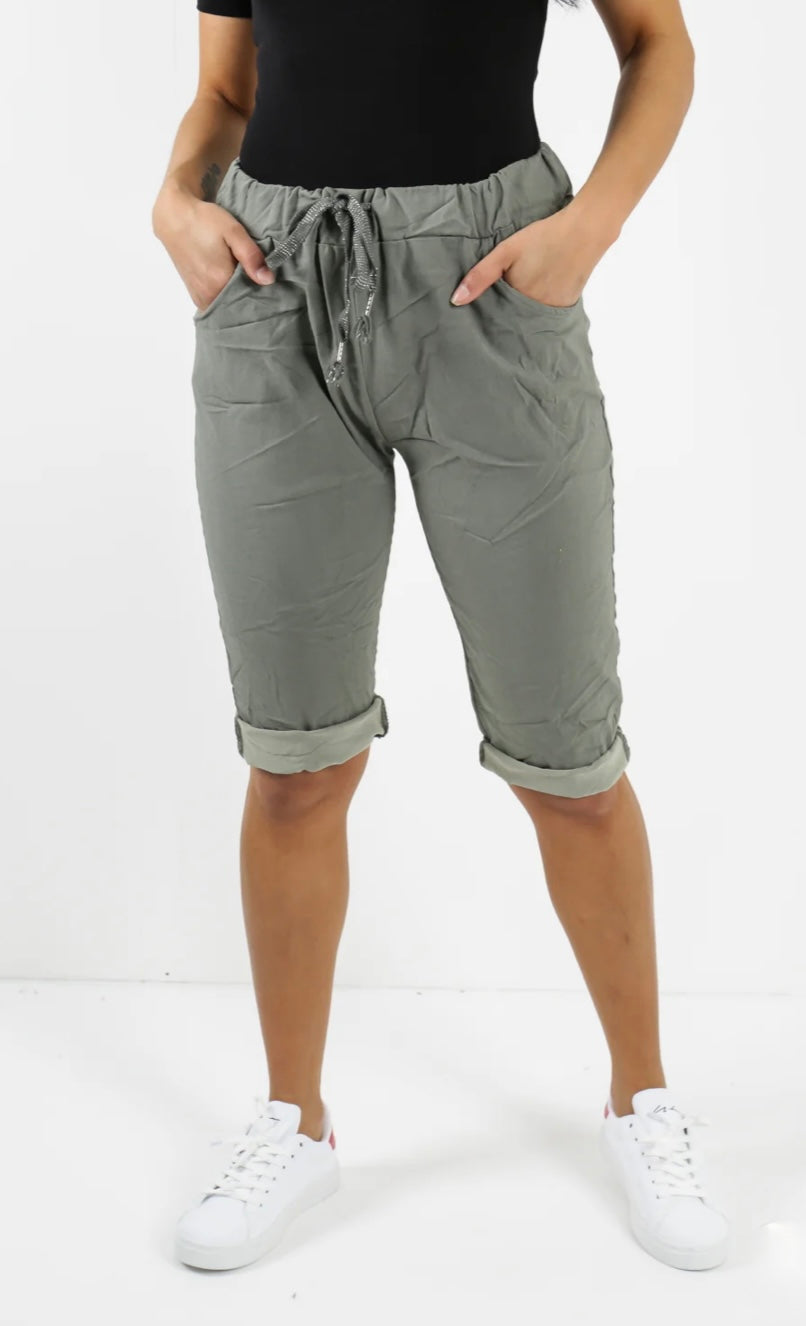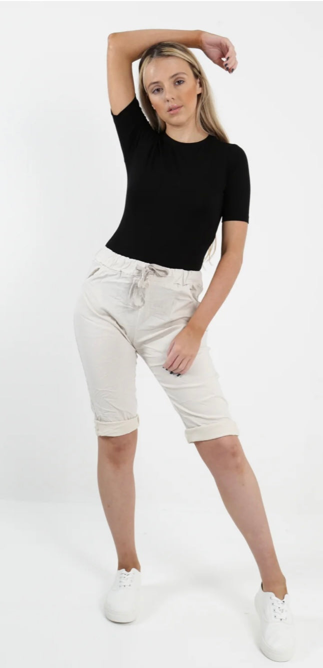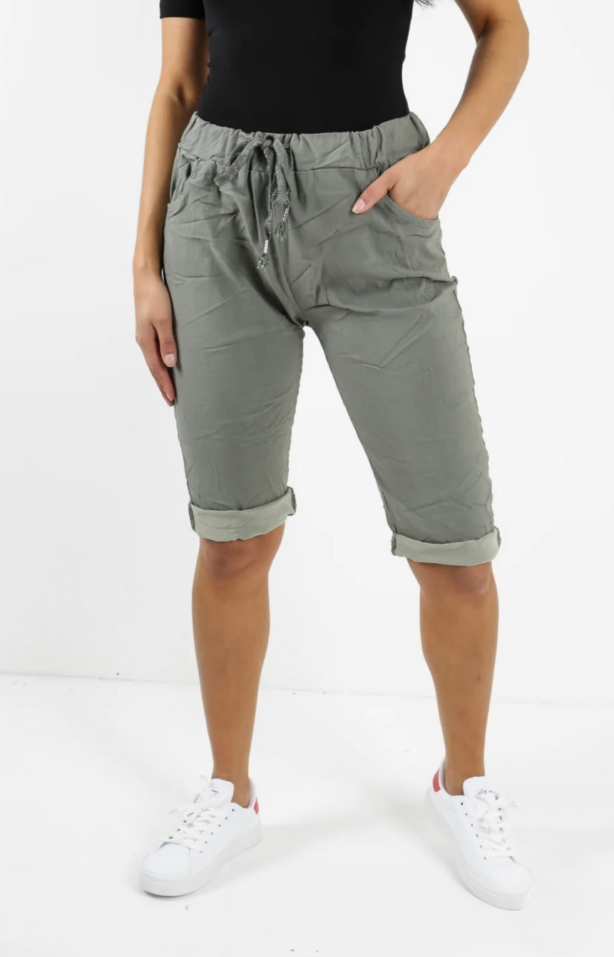 Made In Italy Plain Magic Chino Shorts with Tie string adjustable waist. Featuring roll up hem and 2 side pockets for that extra comfort.