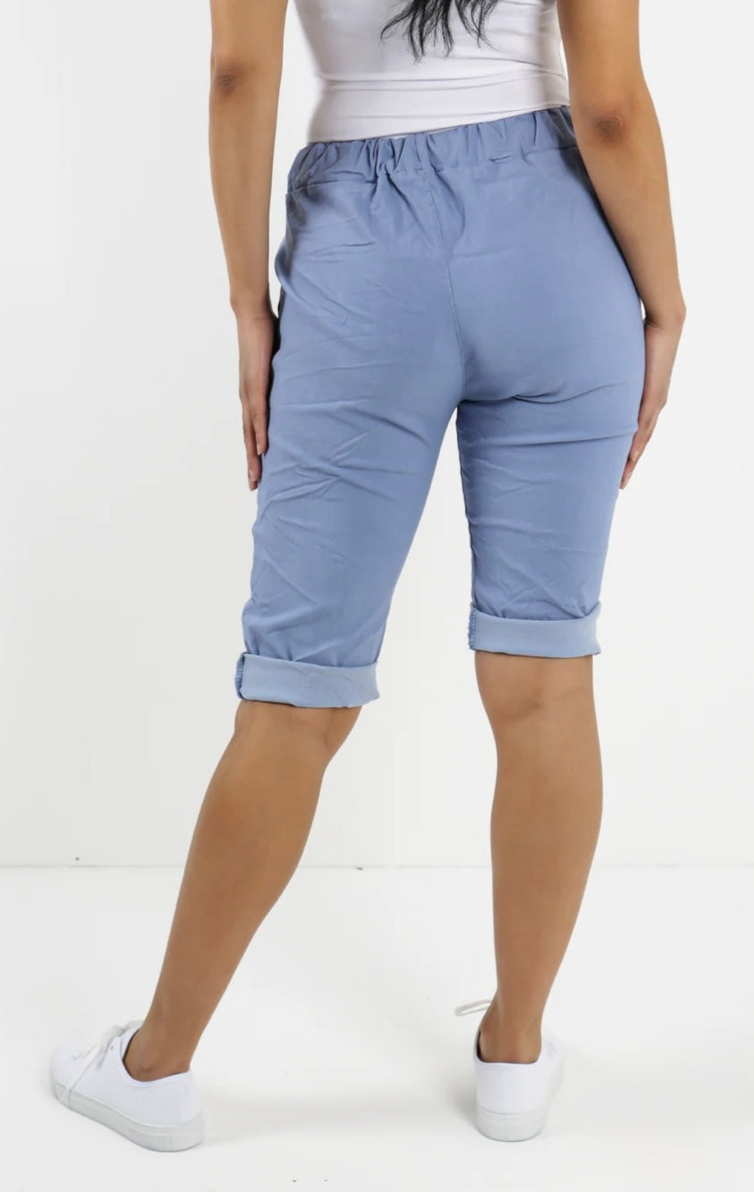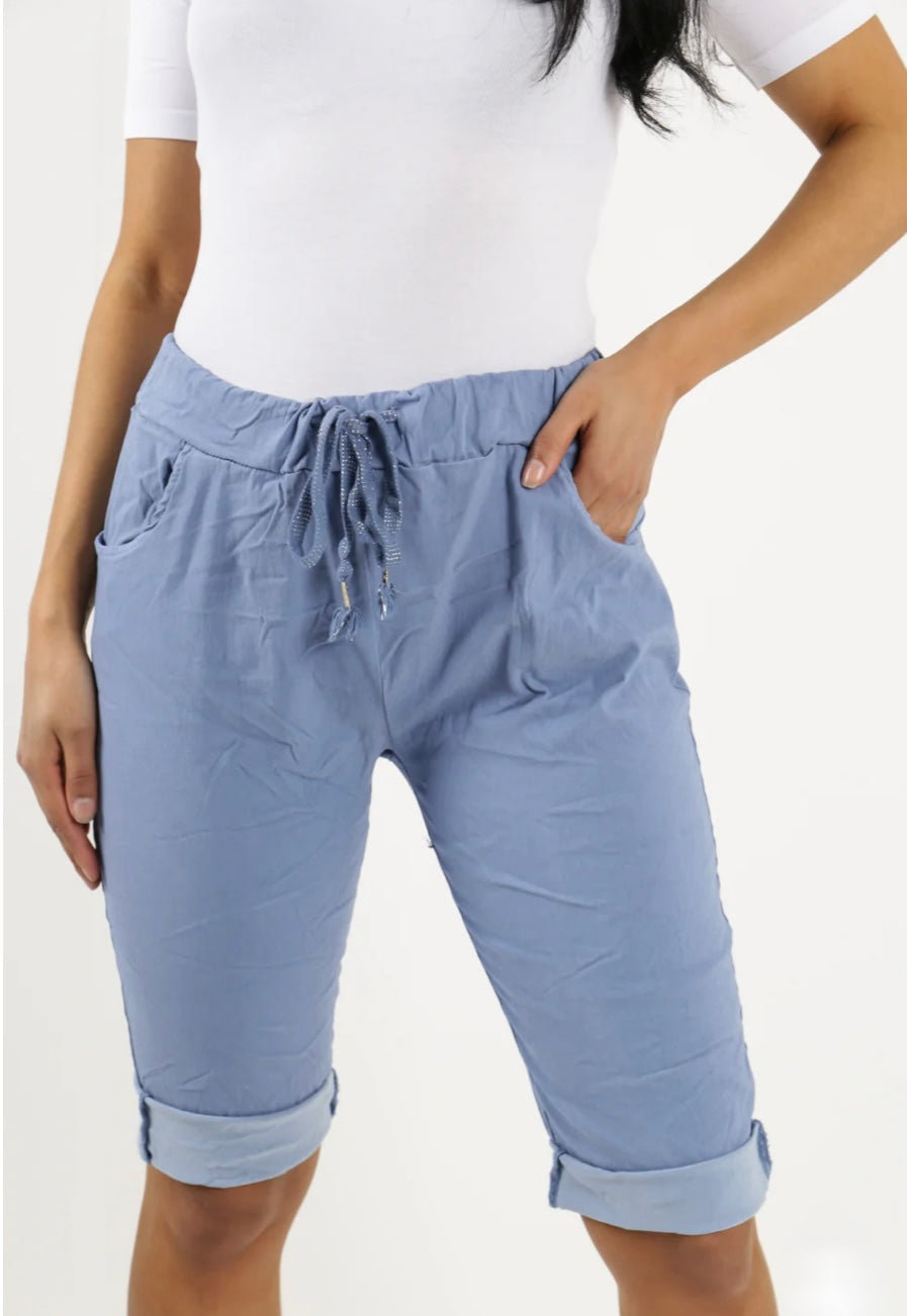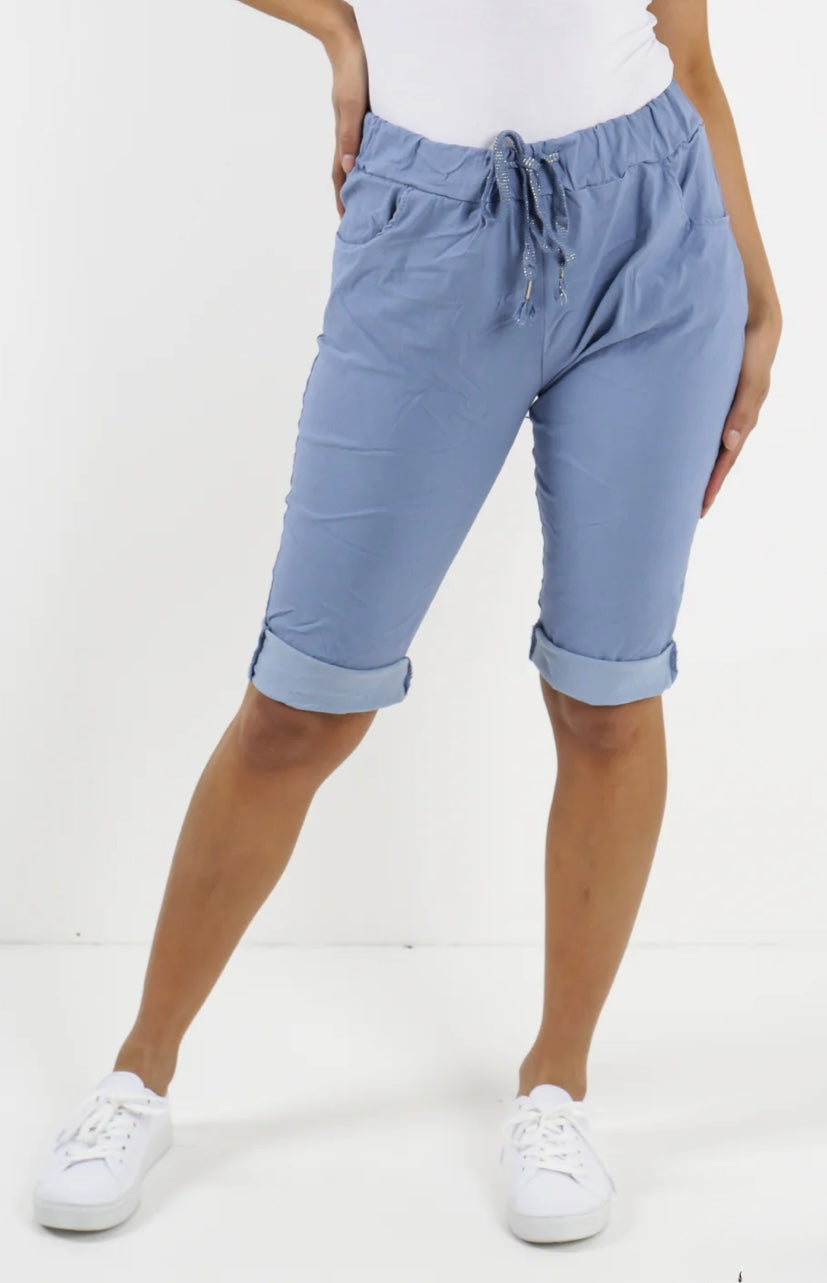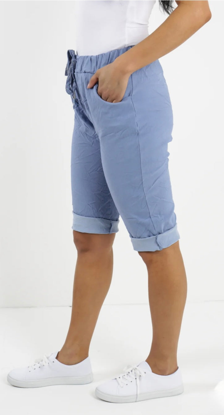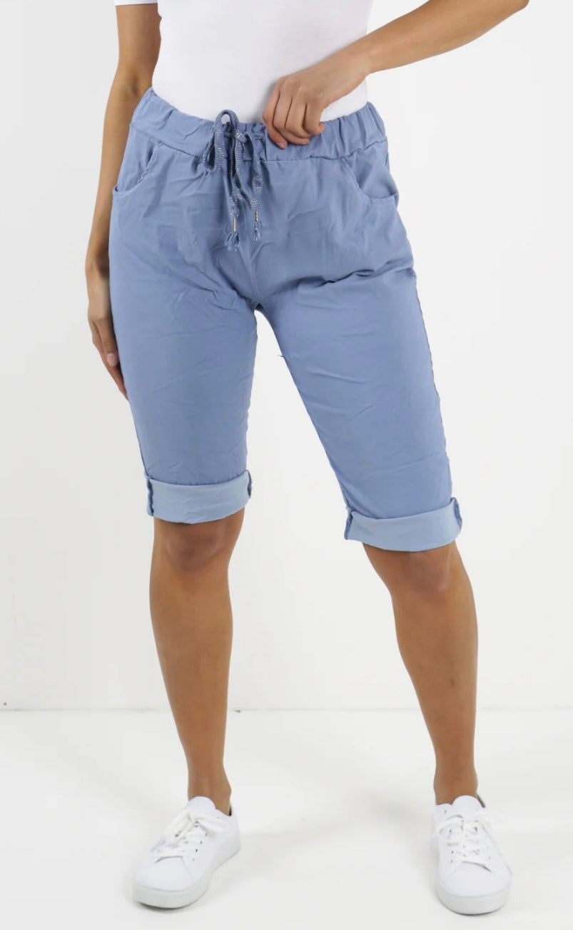 Made In Italy Plain Magic Chino Shorts with Tie string adjustable waist. Featuring roll up hem and 2 side pockets for that extra comfort.