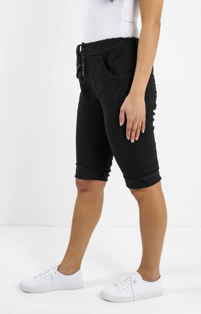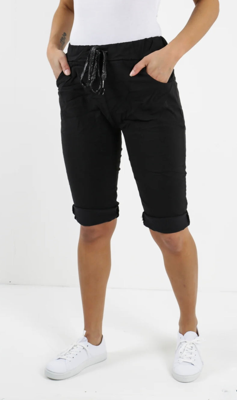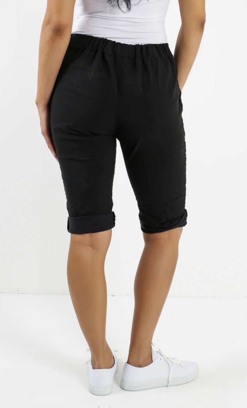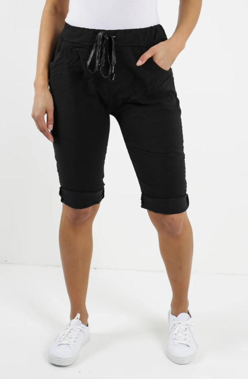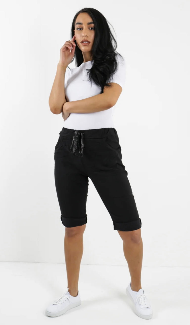Made In Italy Plain Magic Chino Shorts with Tie string adjustable waist. Featuring roll up hem and 2 side pockets for that extra comfort.