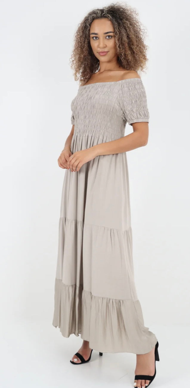 Morocco - Shirred Bodice and Tiered Maxi Dress - 5 Colours