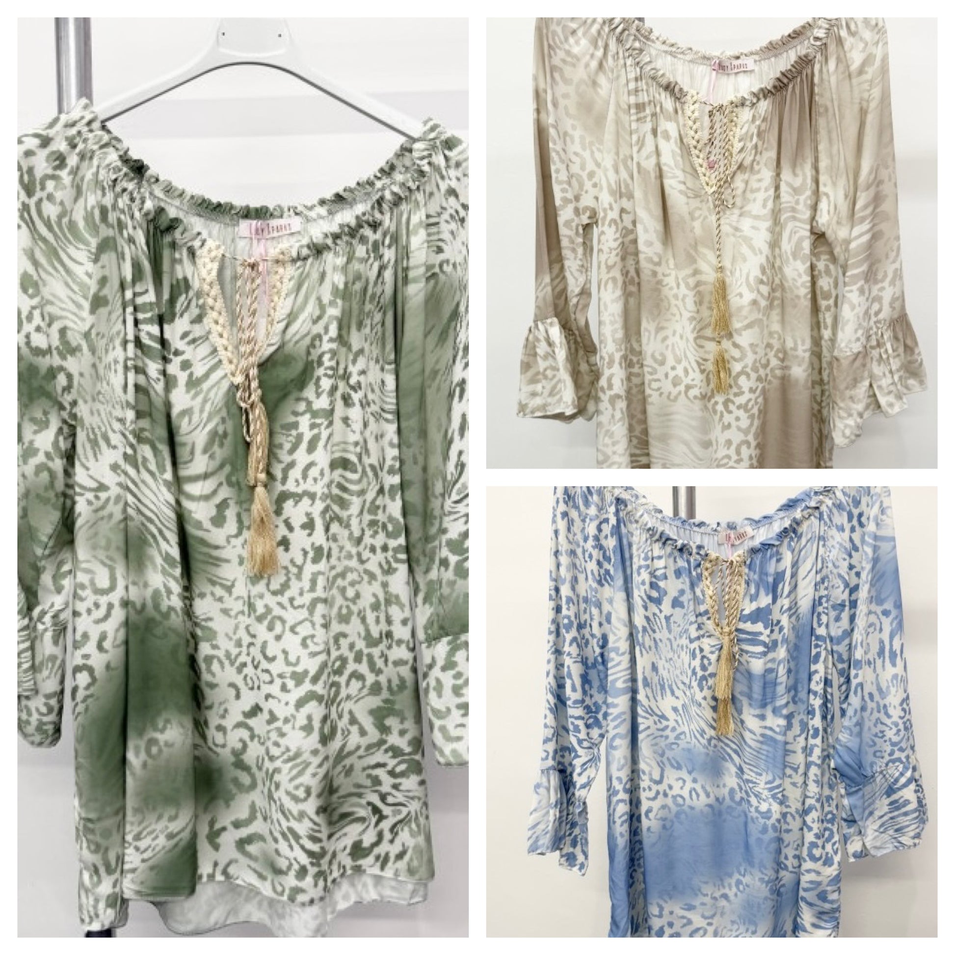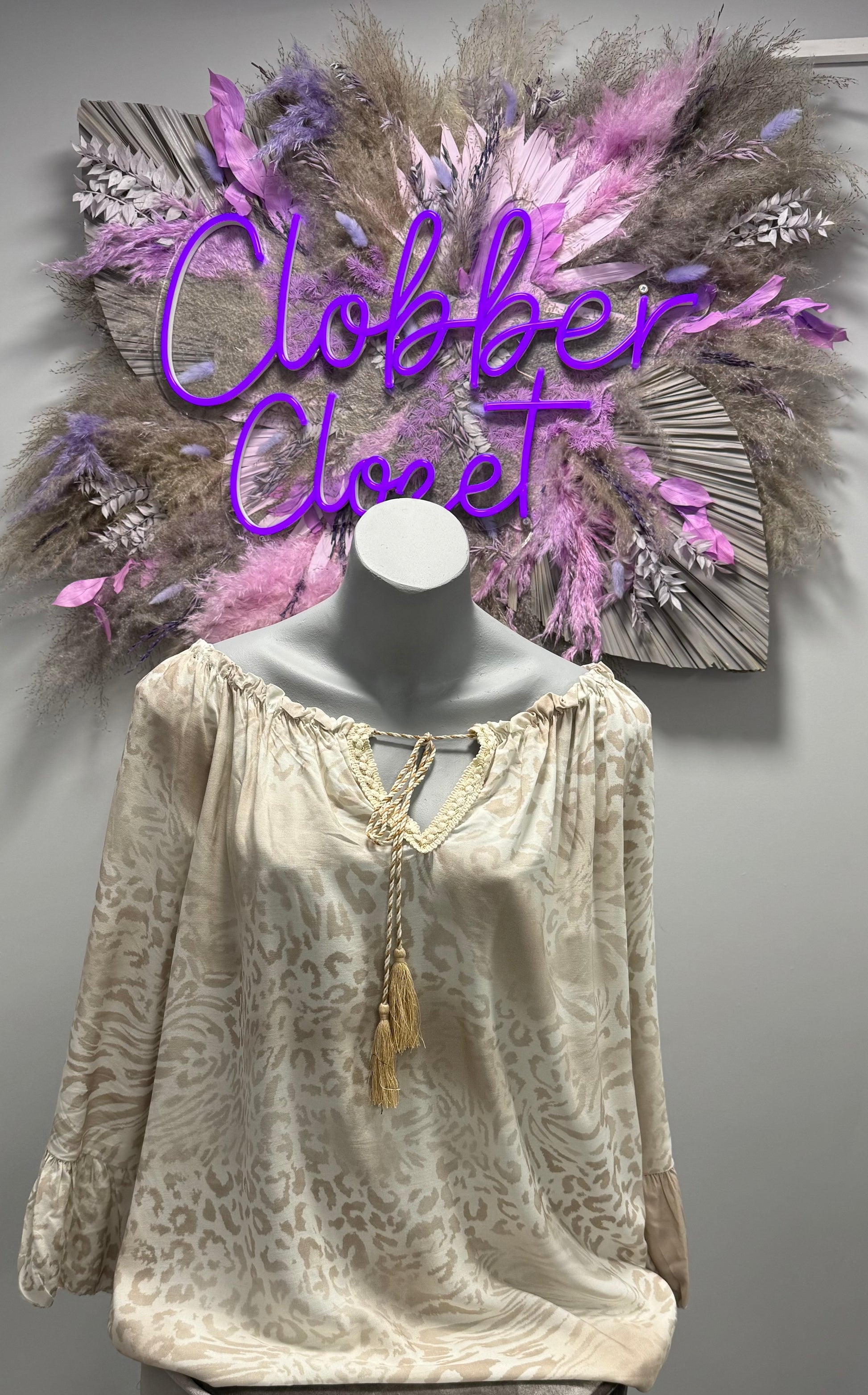 Add a bold statement to your wardrobe with this effortlessly stylish bell sleeves top, featuring a striking animal print and playful tassel neck ties. Designed for comfort and flair, this piece blends boho vibes with modern edge – perfect for dressing up or down.