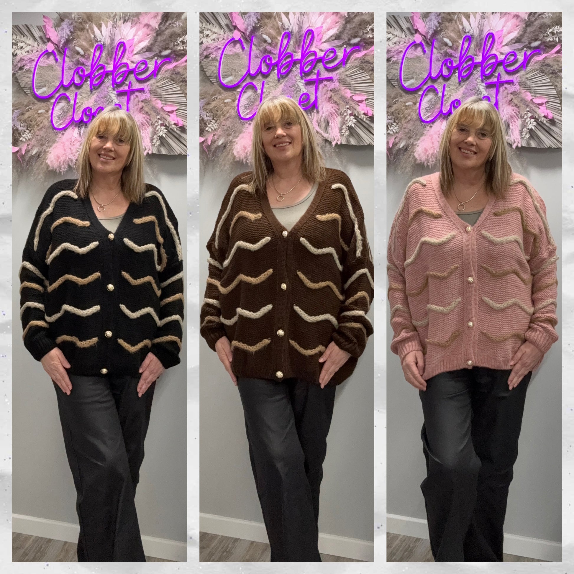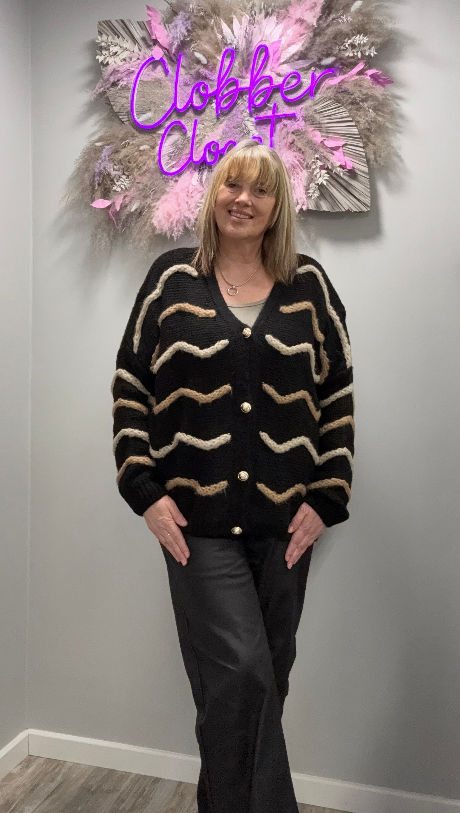Plus Size Chunky Knit Striped Cardigan with Button Front