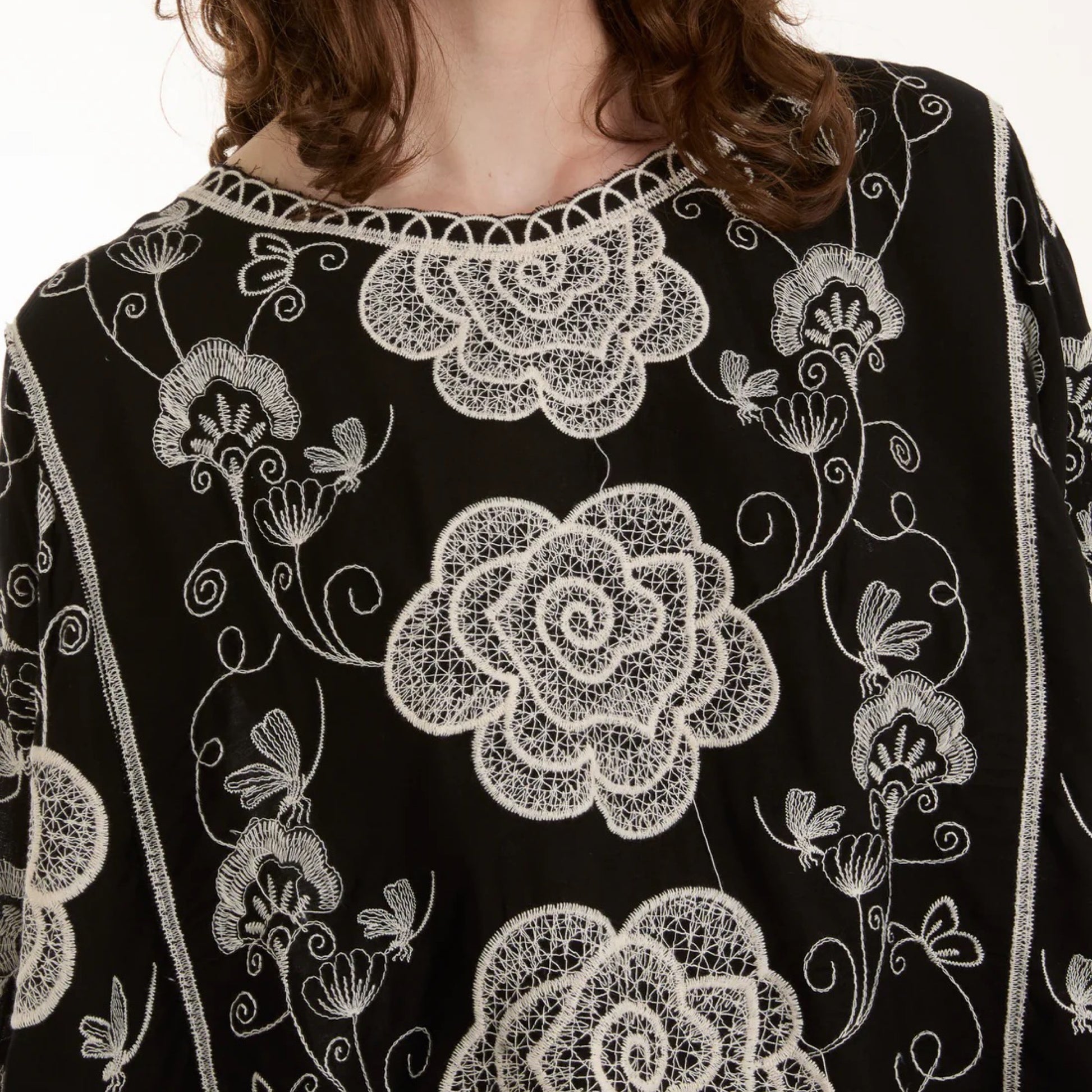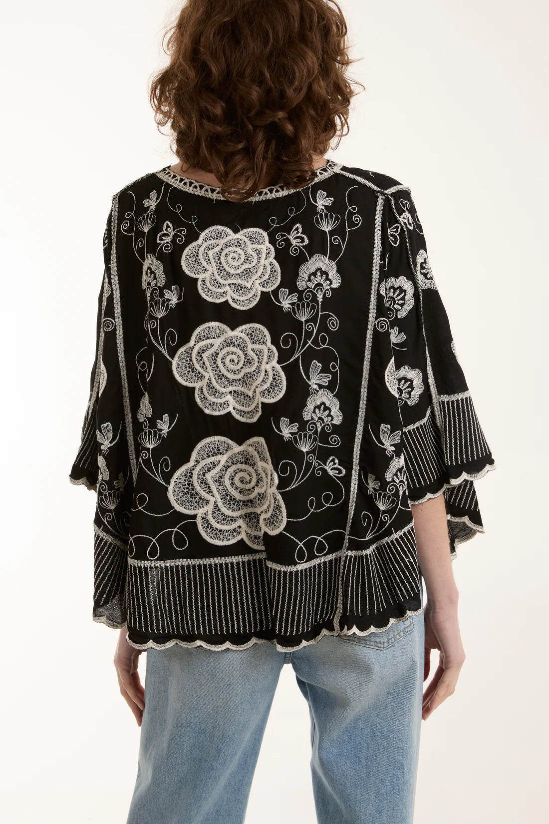 Ramona - Black Embroidery Flower Scallop Blouse