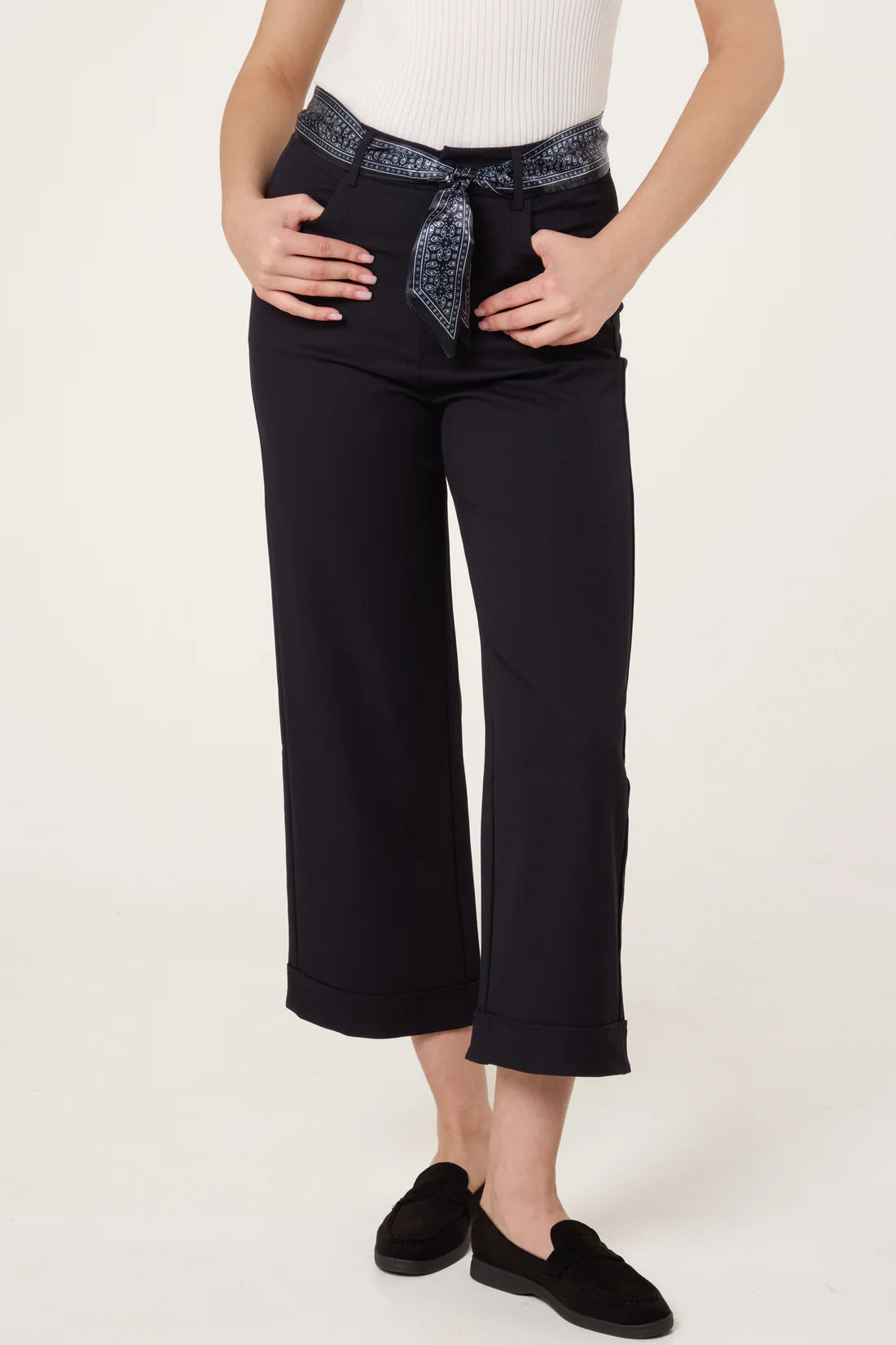 Scarf Belt Straight Leg Trousers